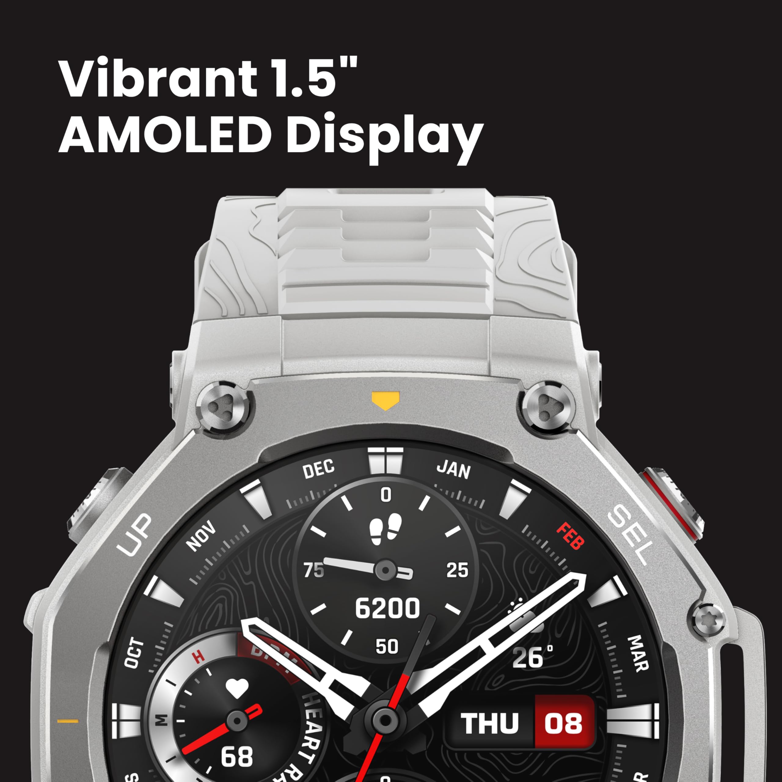 - 27 Days of Battery Life: The Amazfit T-Rex 3 can last for 27 days with typical use, 42 hours in GPS Accurate Mode, and up to 114 hours in GPS Long Battery Life Mode. With some settings disabled, GPS usage can even last up to 180 hours for long hikes.;Free Maps & Advanced GPS: Download free global, contour, and snow maps. Track your adventures accurately with dual-band positioning, backed up by 6 satellite systems for fast connection. Get turn directions from your smartwatch as you go.