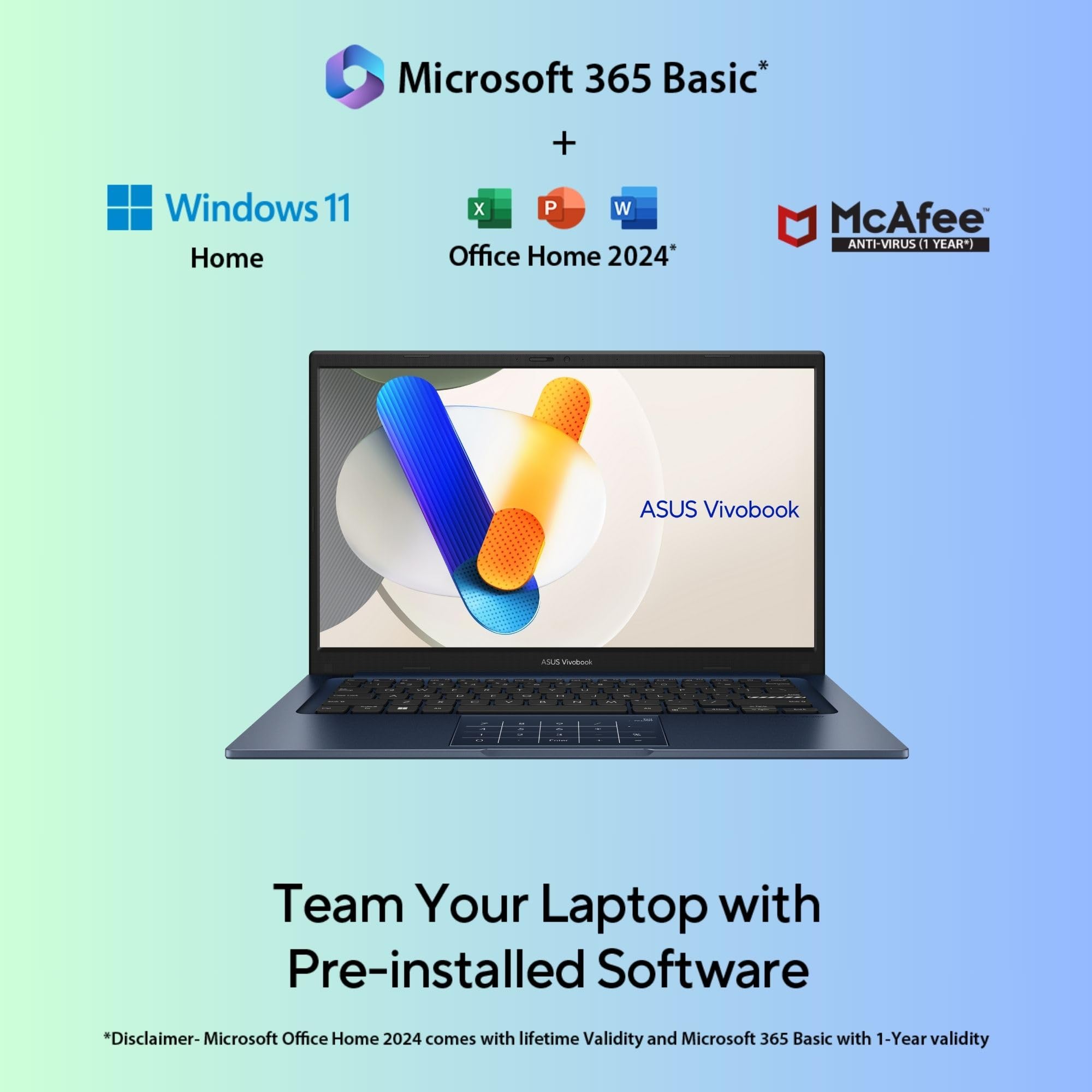 ASUS Vivobook 14,Intel Core i3-1315U Processor, (8GB RAM/512GB SSD/14 FHD (1920 x 1080)/Win 11/M365 Basic (1Year)*/Office Home 2024/Quiet Blue/1.40 kg), X1404VA-NK760WS