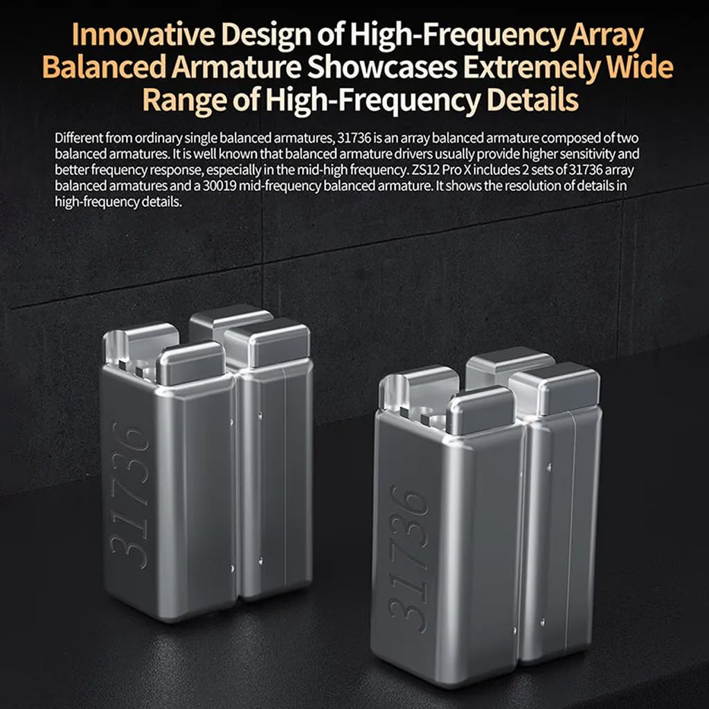 • PRECISION IN EVERY NOTE WITH 1 DD + 5 BAs DRIVER: Experience the ultimate in audio excellence with the KZ ZS12 Pro X In-Ear Monitor, designed for audiophiles and professional musicians. This IEM features super-linear dynamic drivers and five balanced armatures, delivering deep, resonant bass and precise high-frequency details. The innovative 31736 array balanced armature and 30019 mid-frequency armature provide exceptional sensitivity and a wide sound range, from the deepest bass to the highest