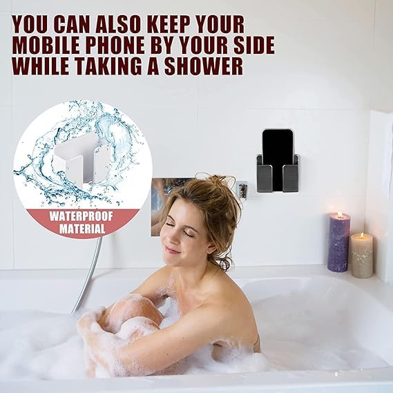 EDNITA Mobile Holder for Wall | Phone Stand with Self Adhesive Phone Holder for Shower, Multi-Functional Storage Holder, Bedside Fixed Rack, Bedroom, Office Accessories (Pack-1 White)