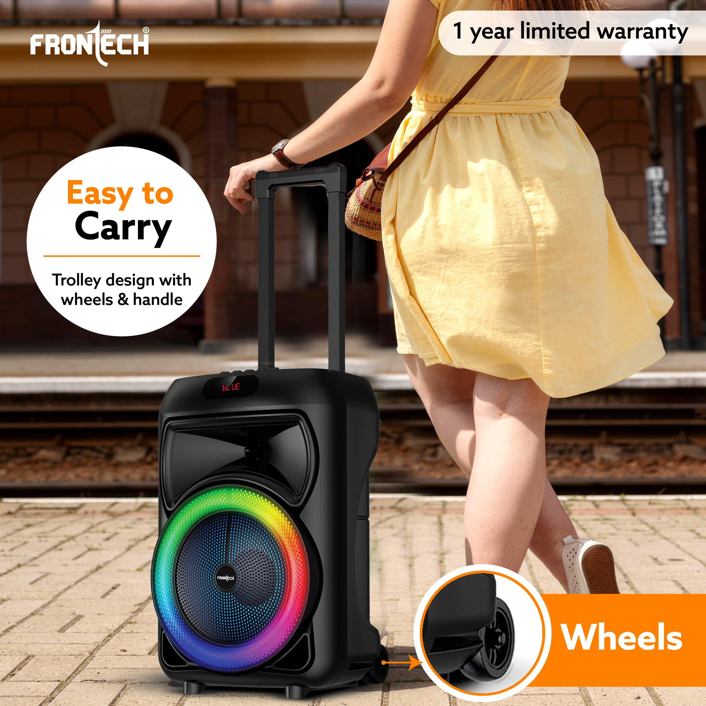 Details: Enhance your audio immersion with the FRONTECH Multimedia TROLLEY Speaker ENCORE, a versatile portable powerhouse that boasts style and high-performance audio. Whether you’re hosting a party, enjoying outdoor activities, or seeking a dynamic audio solution, this trolley speaker delivers an immersive sound experience with a variety of features to elevate your entertainment.