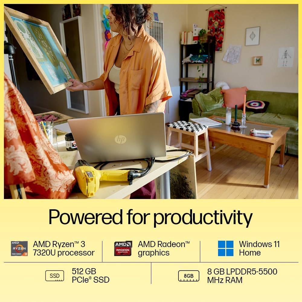 HP 15 AMD Ryzen 3 7320U (8GB Ram/512GB SSD/Fhd/15.6″ (39.6 Cm)/Backlit Keyboard/Windows 11/Ms Office 21/1.59Kg/Silver) Fc0026Au Laptop