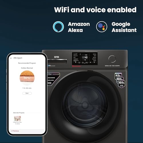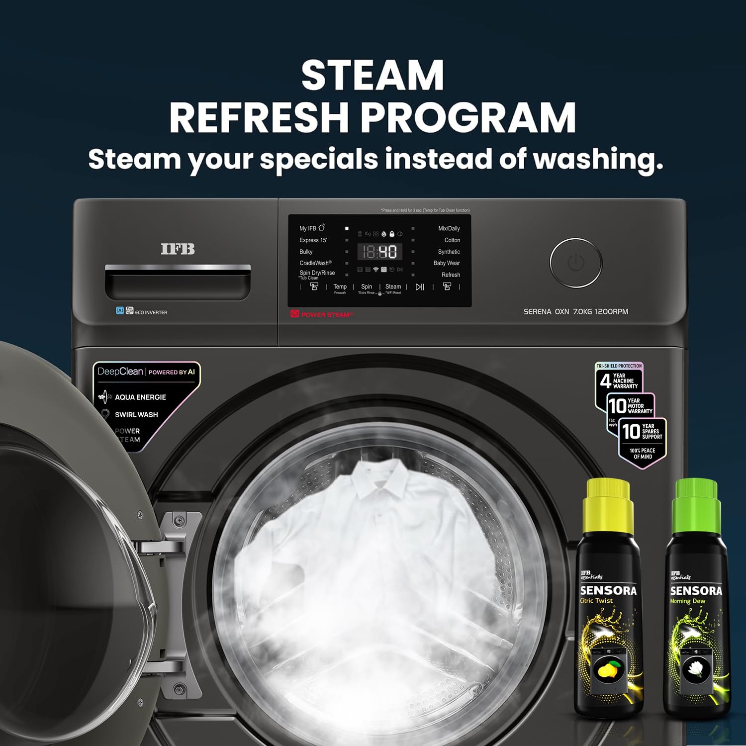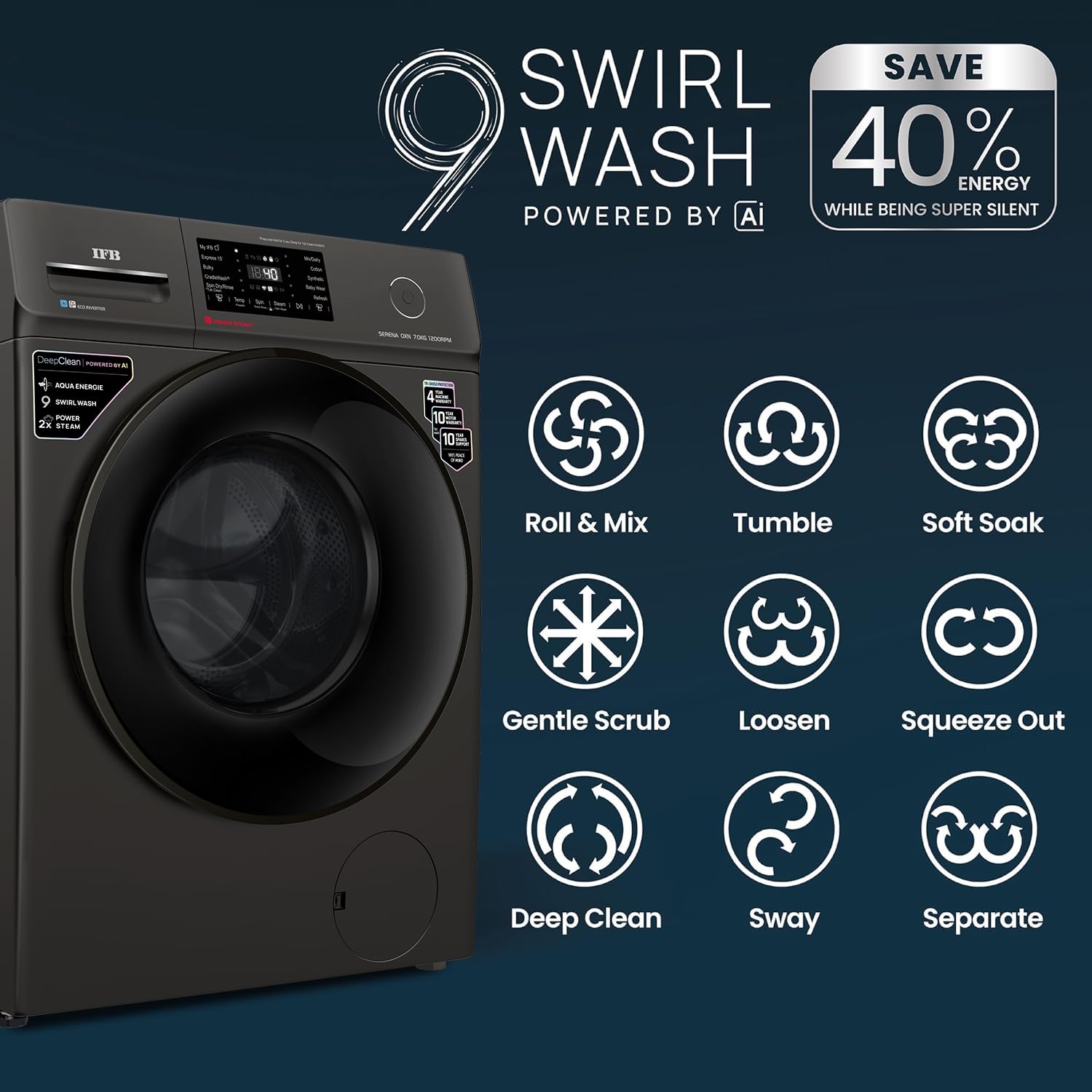 IFB 7 Kg 5 Star, DeepClean® Technology, AI Powered, WiFi, Fully Automatic Front Load Washing Machine (SERENA OXN 7012 CMS, PowerSteam®, 9 Swirl, Steam Refresh, Inbuilt Heater, Eco Inverter, Onyx)