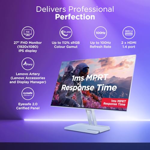 Lenovo L27i-4A, 27 inch (68.5cm), IPS, FHD 1920×1080, 100Hz, Cloud Grey, 1ms, FreeSync, 99% sRGB, 3Wx2 Speakers, Smart Display Customization Artery, 2X HDMI 1.4, VGA, Tilt Monitor