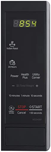 - Panel information in detail / Baking functions / Programs: Indian Rasoi, 24 Hours, Health Plus, Utility Corner | Panel information: +More/ -Less – Decreasing / Increasing the cooking time & Selecting auto cook weight limit, For selecting cooking time (10 minutes, 1 minutes & 10 Seconds), Stop / Cancel (Energy Savings): Used to stop oven and clear all entries, Start/+30 Seconds: In order to start cooking which is selected, The Start/+30 Seconds features allows you to set 30 Seconds intervals of high power cooking