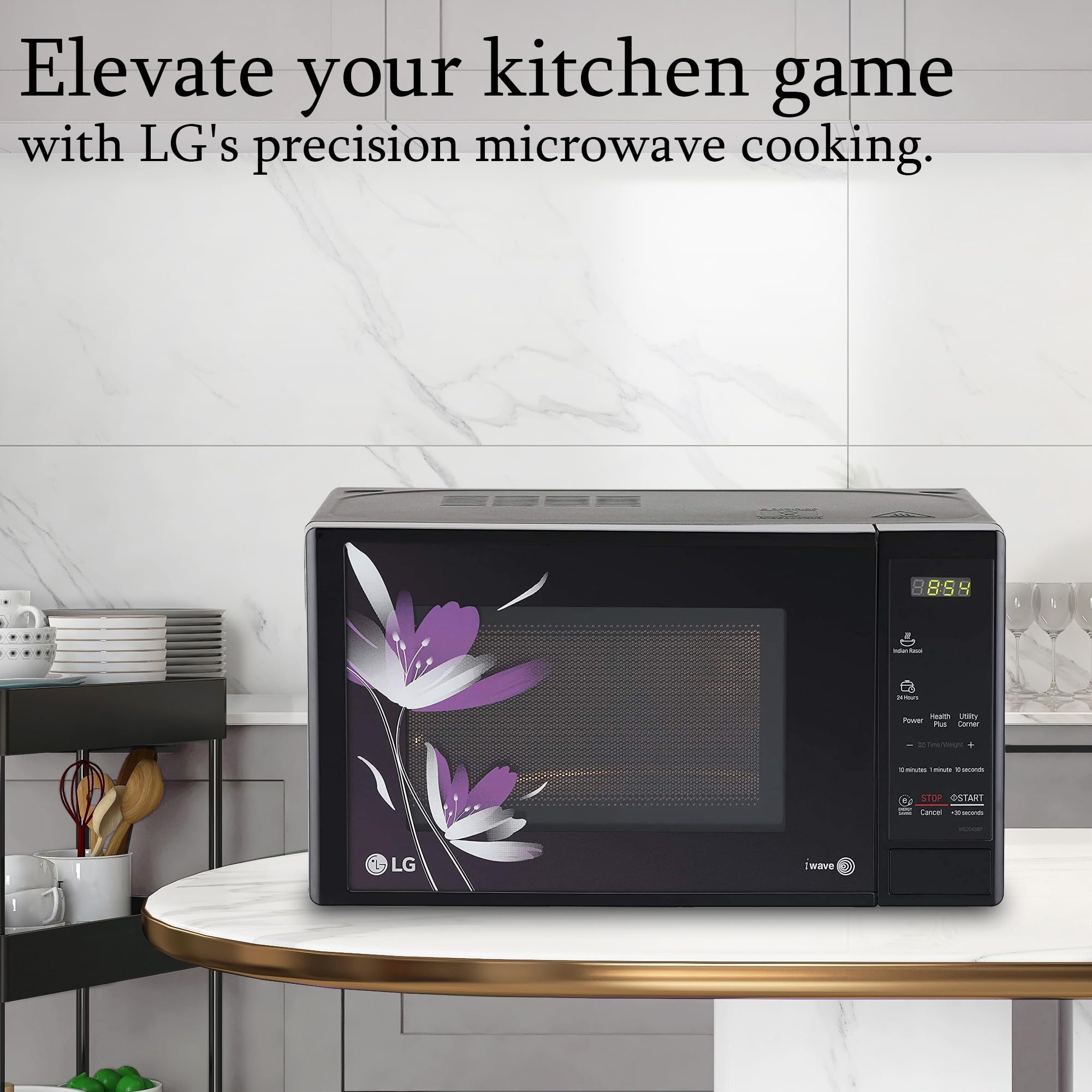 LG 20 L Solo Microwave Oven (MS2043BP, Black, Health plus Menu, I-Wave Technology, Indian Cuisine, Even Reheat & Defrost, Auto Cook Menu, Anti-Bacterial Cavity & Steam Clean)