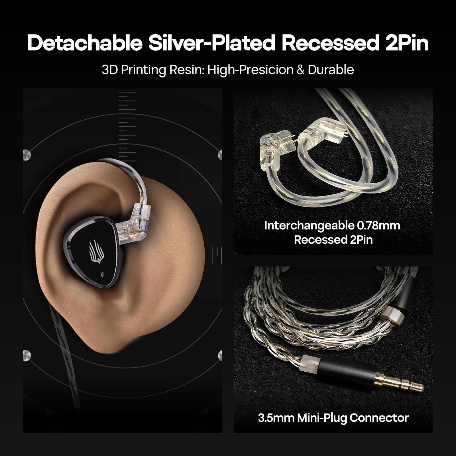 - 【𝐇𝐢𝐠𝐡-𝐏𝐮𝐫𝐢𝐭𝐲 𝐎𝐅𝐂 𝐒𝐢𝐥𝐯𝐞𝐫-𝐏𝐥𝐚𝐭𝐞𝐝 𝐂𝐚𝐛𝐥𝐞】The included silver-plated OFC cable ensures enhanced signal conductivity, allowing every musical nuance to be faithfully transmitted without compromise. The cable is interchangeable, allowing for future upgrades and personalization. The dual-pin male and female socket system, combined with the positioning groove, ensures exceptional durability and reliability. Listen to music in its truest form, with unparalleled clarity and fidelity.