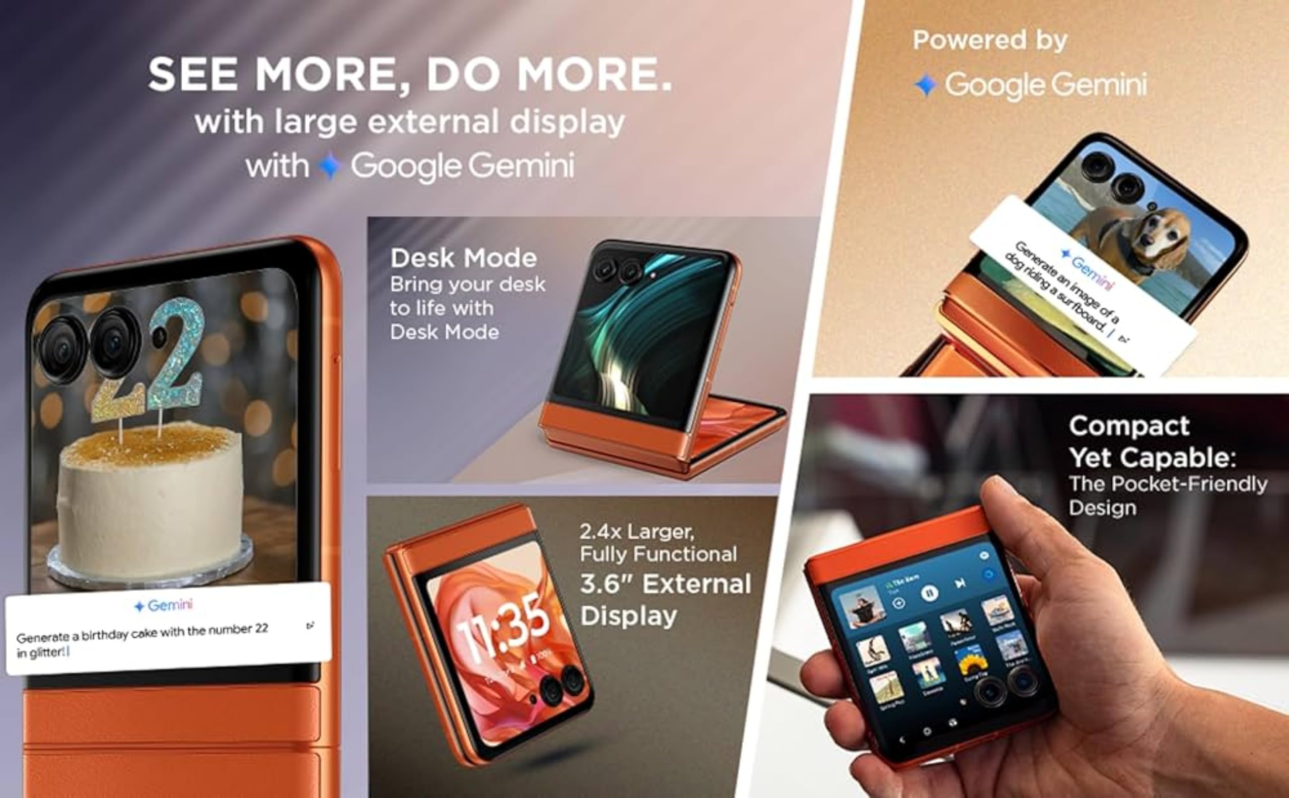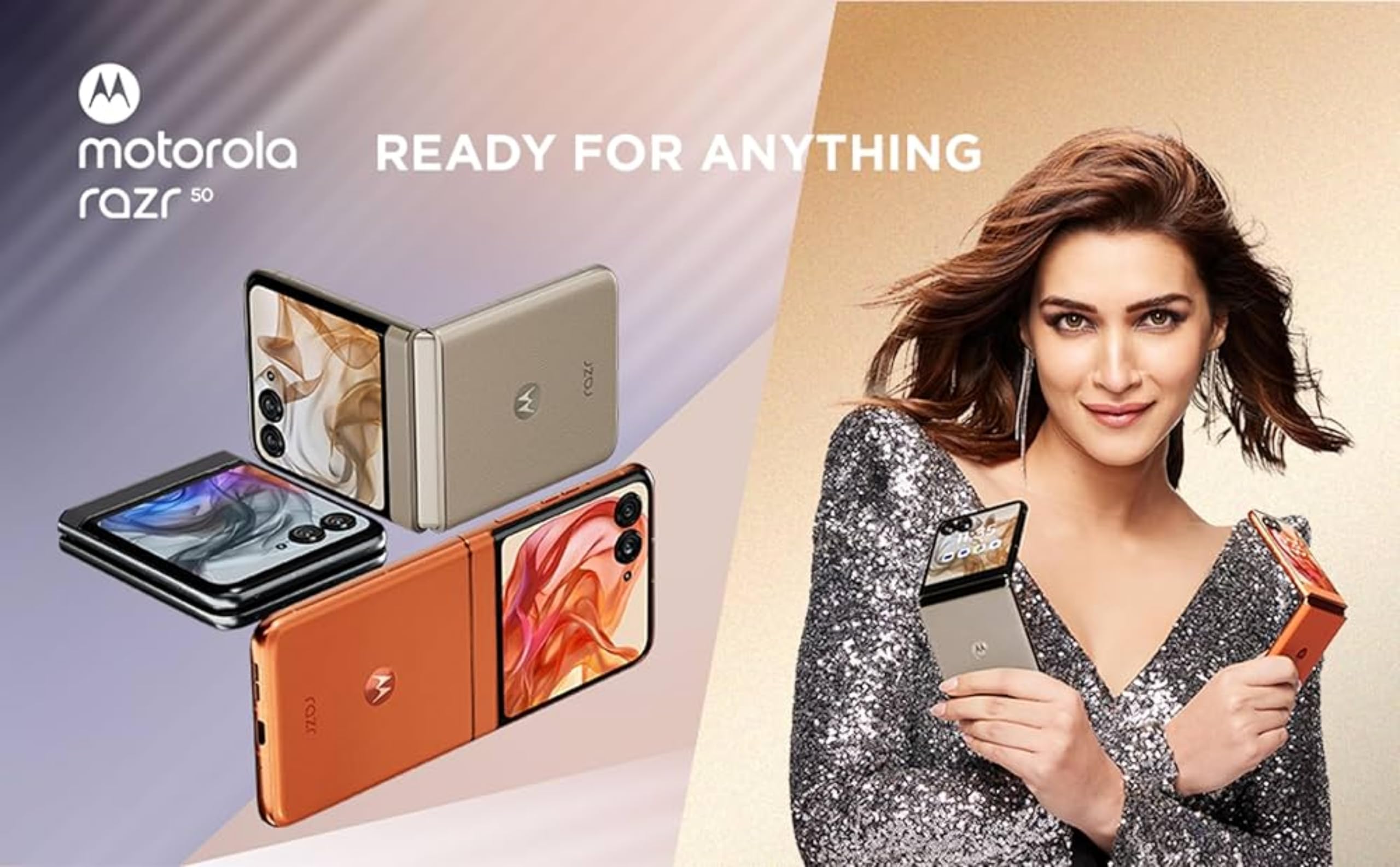 Motorola razr 50 5G (Beach Sand, 8GB RAM, 256GB Storage) | 6.9″ LTPO AMOLED 120Hz Display | 3.6″ OLED 90Hz Cover Display | 50MP + 13MP Cameras | 32MP Selfie | Android 15