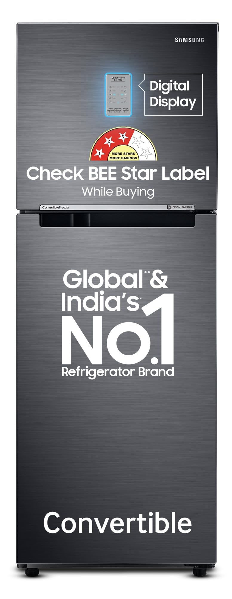 Samsung 236 L, 3 Star, Convertible, Digital Inverter with Display Frost Free Double Door Refrigerator (RT28C3733B1/HL, Black Matte/Black DOI)