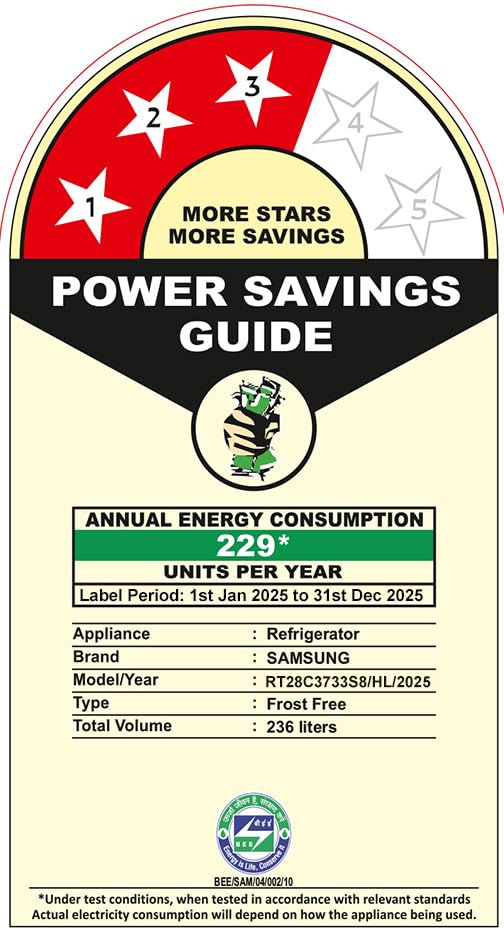 - Energy Rating : 3 Star Energy Efficiency | Annual Energy Consumption : 229 Kilowatt Hours Per Year