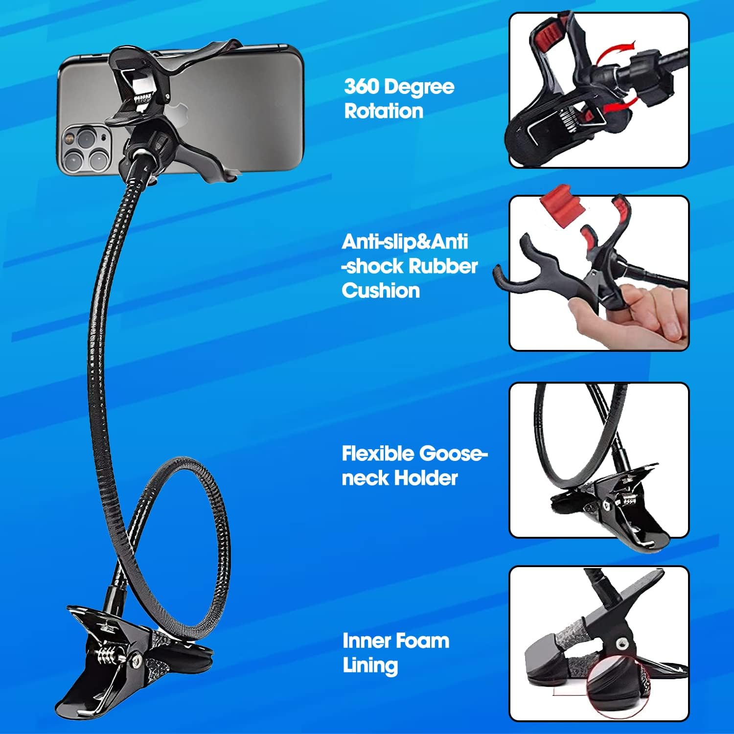 - ✅【Convenient & Ergonomic Design】: Whether you’re lying in bed, sitting at your work desk, or recording content, this mobile holder helps reduce neck strain and hand fatigue. Its flexible design and strong grip make it a reliable daily companion for tech-savvy users.