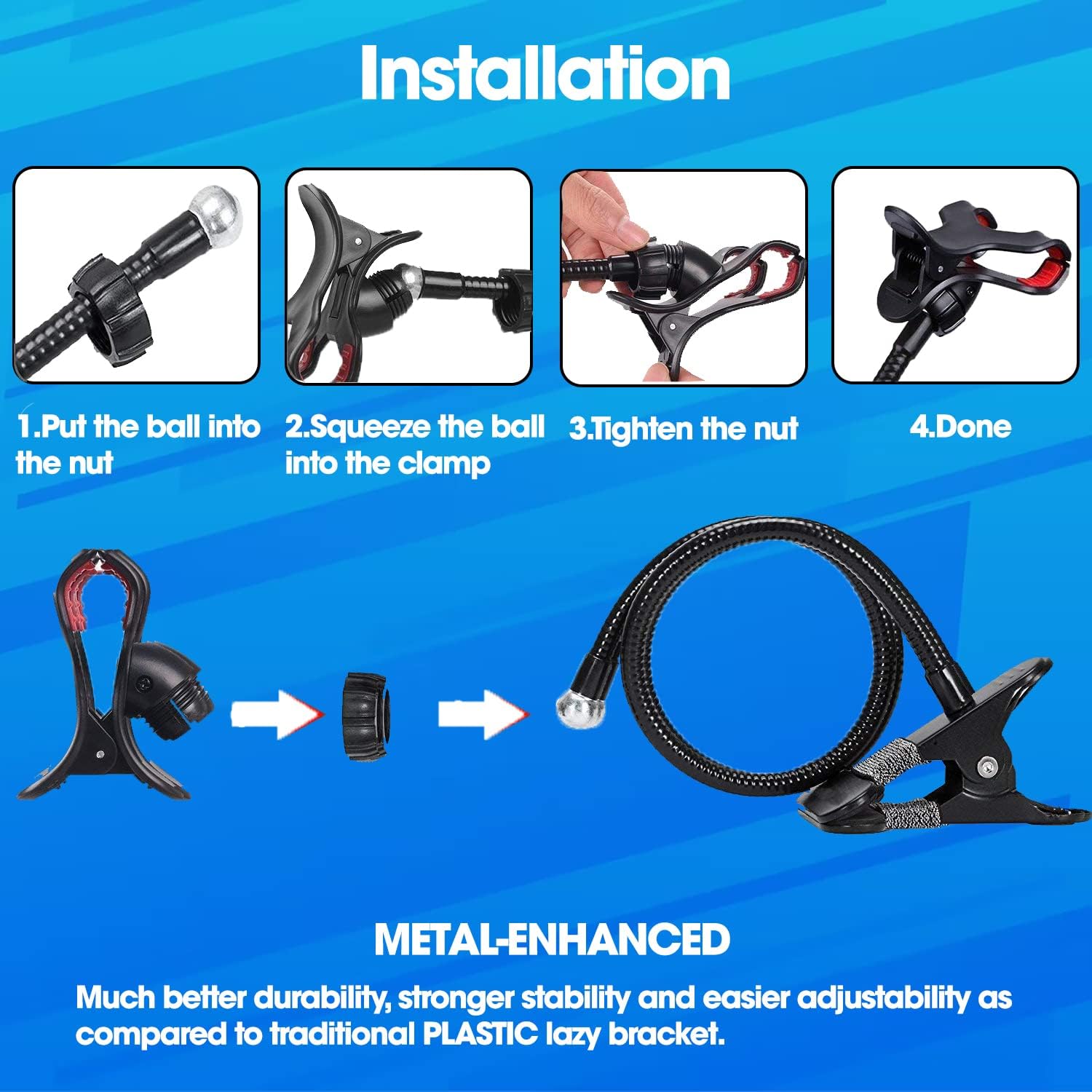 - ✅【Strong and Flexible Metal Gooseneck Arm】: Built with a high-strength flexible metal arm, this phone stand offers 360-degree rotation and multi-angle adjustability for the perfect viewing angle. Whether you’re attending Zoom meetings, watching YouTube videos, or following recipes in the kitchen, the adjustable arm ensures hands-free convenience from any height or direction.