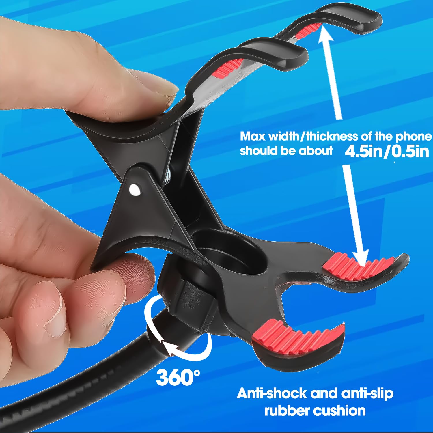 - ✅【Security and Adjustability】: The four claws come equipped with anti-slip and anti-shock rubber cushions to keep your cell phone firmly secured. The long gooseneck is highly flexible and adjustable, allowing you to achieve the perfect viewing angle. The 360-degree swivel ball head enables both horizontal and vertical viewing.