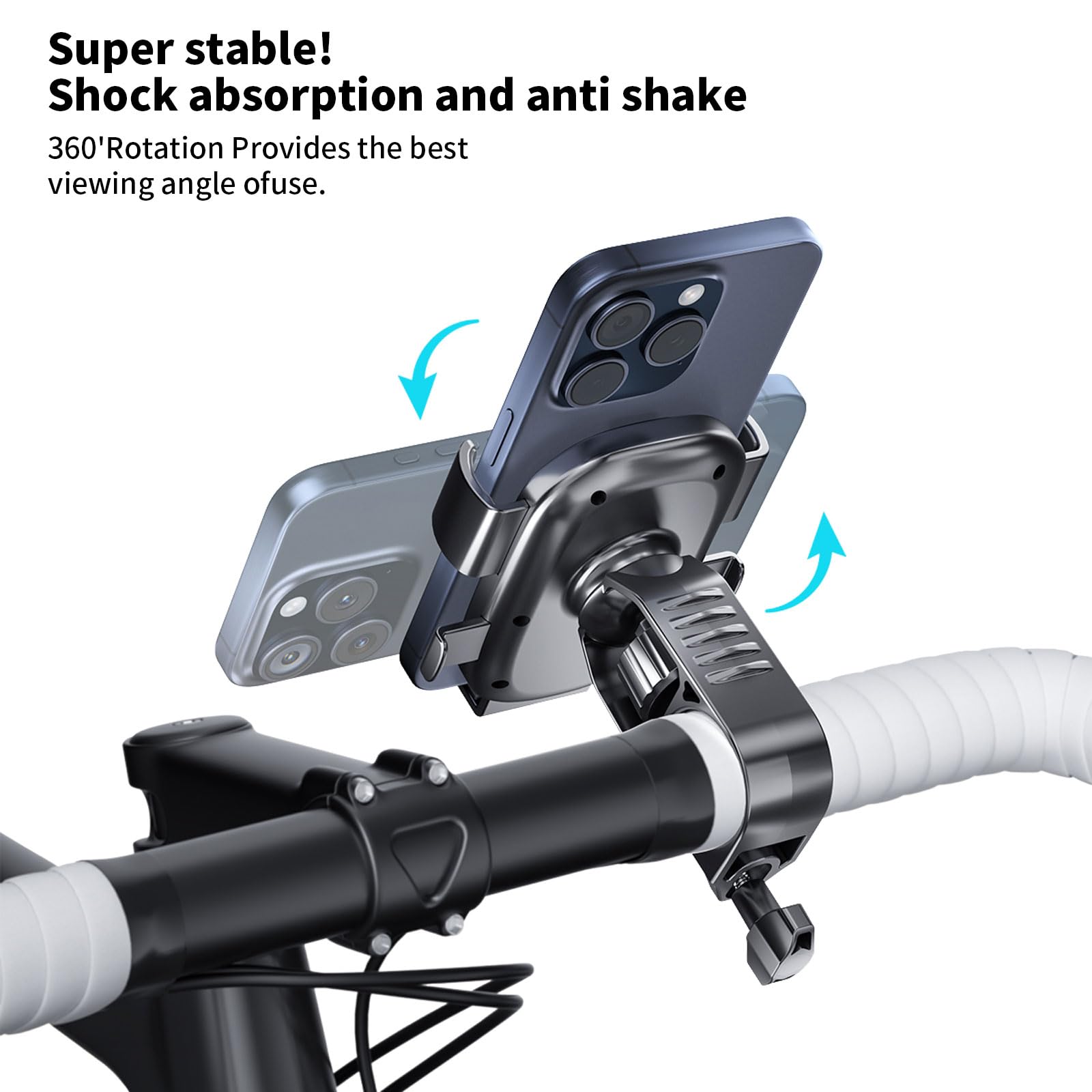 • 【360° Adjustable phone holder for bike】 The mobile stand bike can rotate 360°, allowing for perfect screen adjustment. It’s an ideal Motorcycle/bike/scooter accessory for your journey