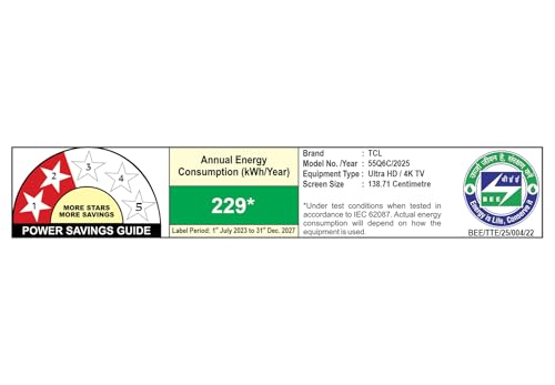 - Smart TV Features: 4K QD-Mini LED Google TV | 3GB RAM | 32GB ROM | 64-bit Quad Core Processor | WIFI 5 | Hands Free Voice Control | Prime Video, Netflix, Hotstar, Zee5 and more | Web Browser | Screen Mirroring | Works with Alexa | Airplay 2 | Game Master | Eneygy Rating: 2 Star | Annual Energy Consumption: 229 kWh/ Year