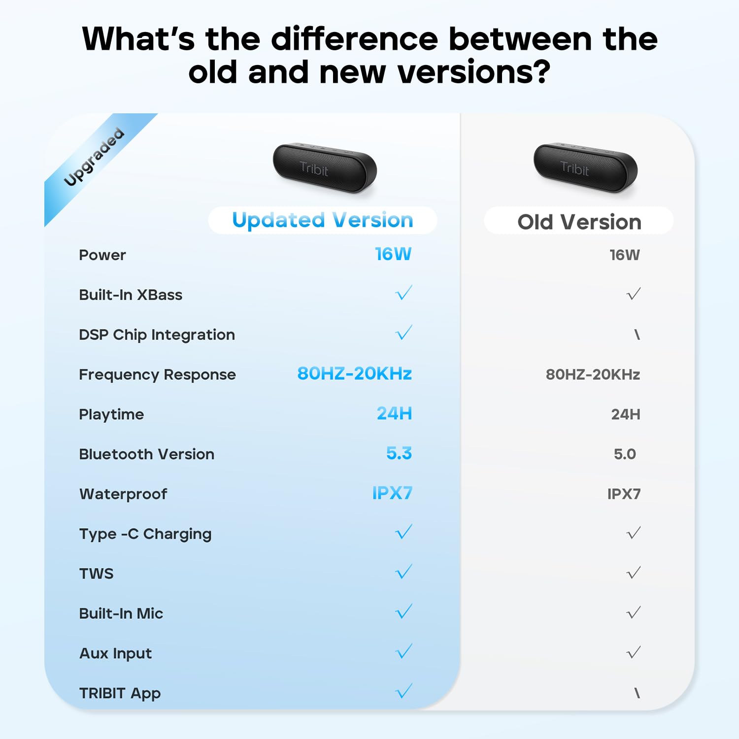 Tribit Updated Version XSound Go Wireless Bluetooth 5.3 Speakers with Loud Stereo Sound & Rich Bass 16W,24H Playtime,150 ft Bluetooth Range,Outdoor Lightweight IPX7 Waterproof,Built-in Mic (Black)